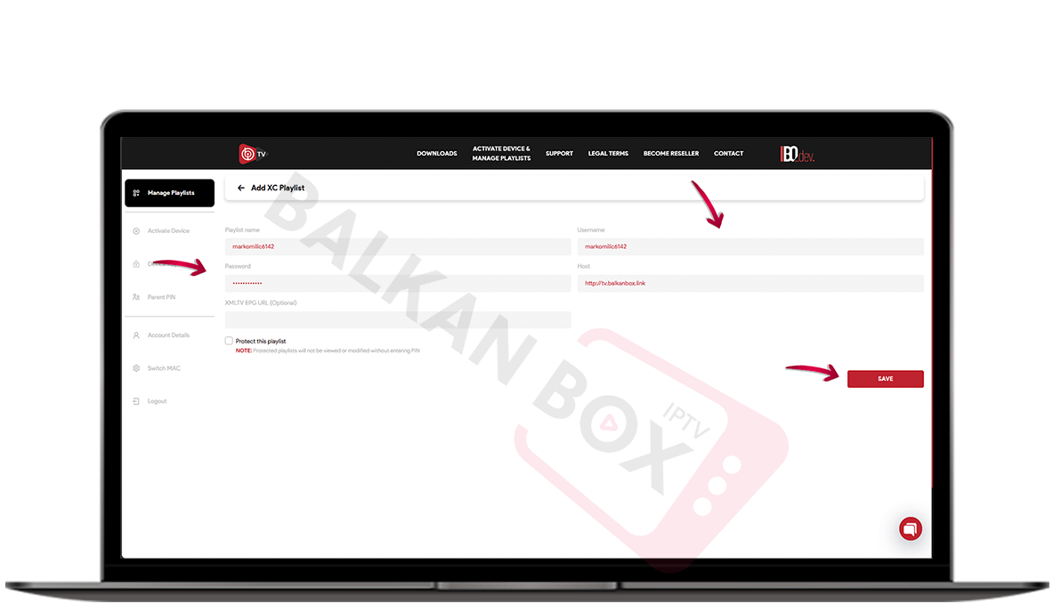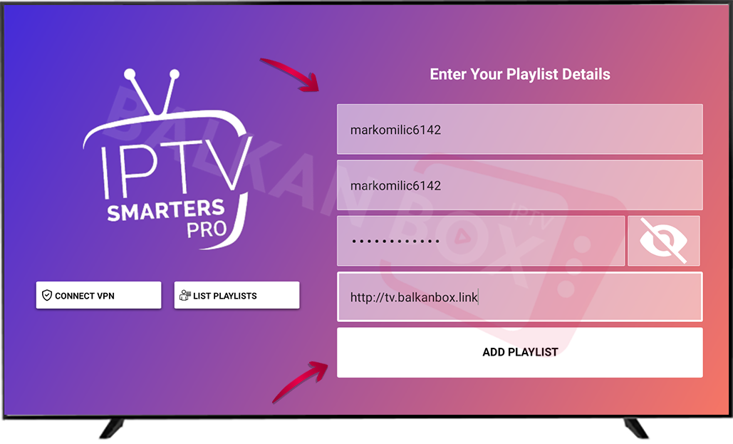 • U polje Playlist Name možete uneti proizvoljan naziv, npr. BalkanBox TV.