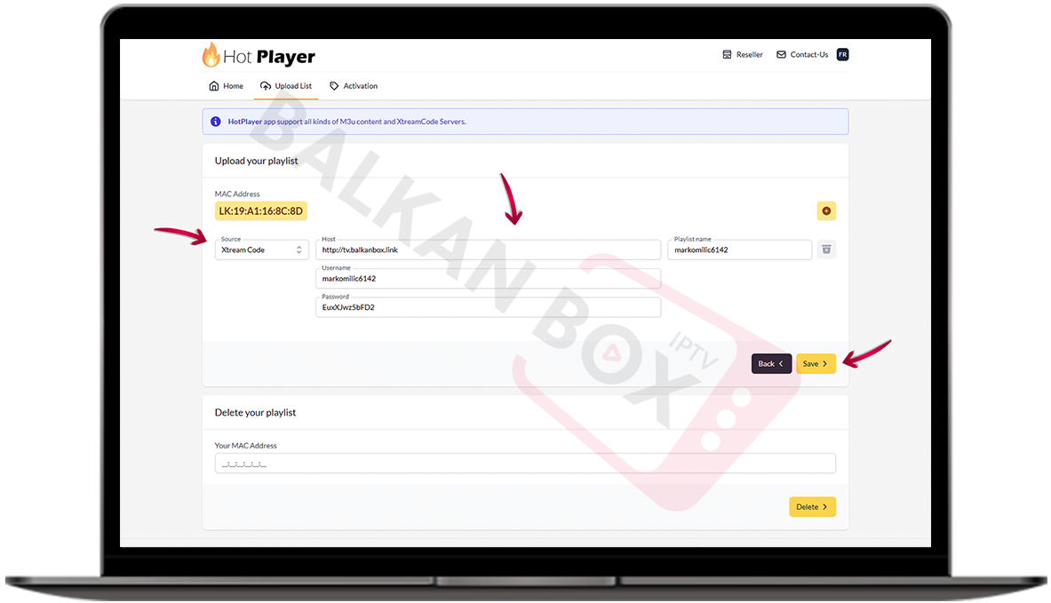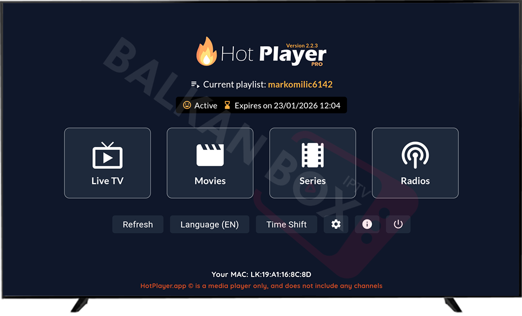 • Tu se nalaze korisničko ime, lozinka i server URL koje ćete koristiti za unos u Hot Player.