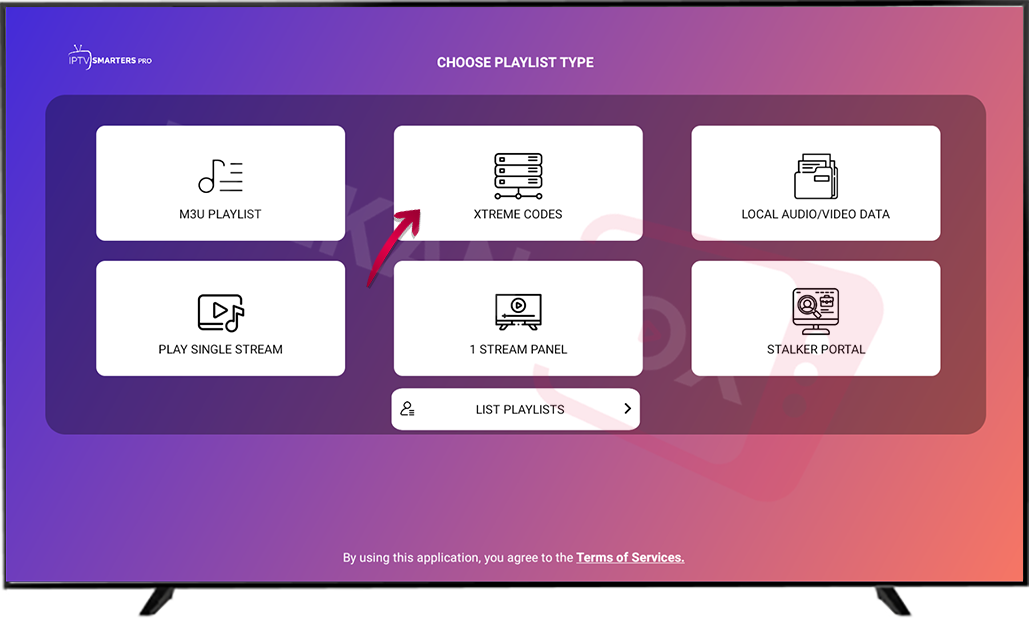 • Kada se otvori ekran sa opcijama, izaberite Xtreme Codes kao tip plej-liste.